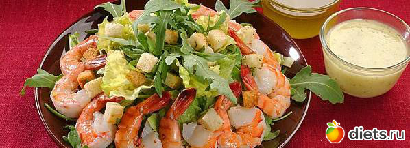 В России более популярен салат с руколой и креветками. Все то же самое, как в предыдущем рецепте, но вместо сыра пармезан положите в блюдо креветки - тоже будет очень вкусно.
