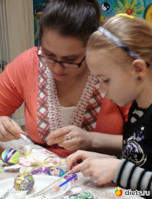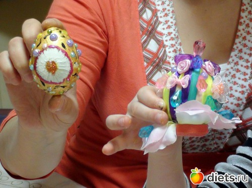 Доброе утро всем жительницам сайта, всем, кто создает весну своими руками и кто любит мастерить занимательны штукенции, а также тем, кто просто ими наслаждается!! Решила напоследок рассказать вам про наше с дочкой "яйцеукрашательство" (понимаю, что порядком уже вам надоела своими постами, но ничего поделать с собой не могу - люблю работать руками). Еще перед Пасхой решили мы сделать несколько интересных яичек (куда уж весеннее))))), потому как дочка моя тоже испытывает муки творчества, как и я, а помог нам в этом хобби-клуб "Счастье своими руками" (никакой рекламы). Смотрите что получилось!!!