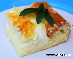 Выложить яблочно-творожную запеканку в смазанную оливковым маслом форму и запекать в духовке (180 гр) до готовности.