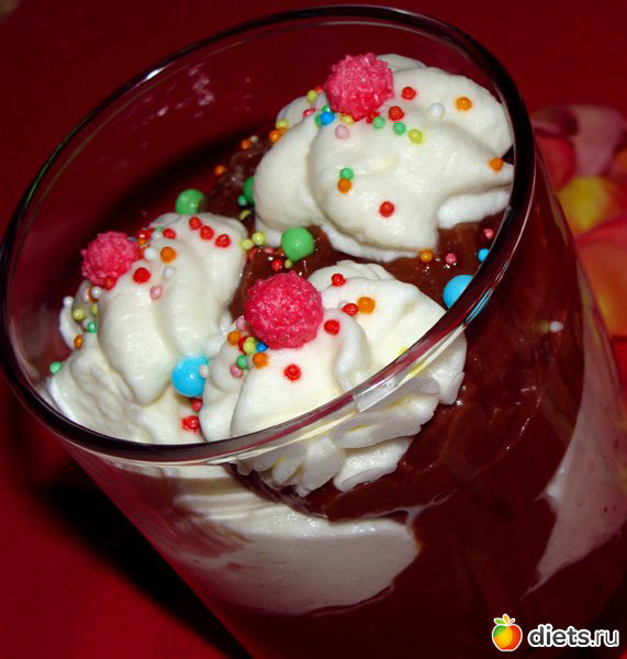 Например, так: выкладываем слоями пудинг и крем, сверху крем и сахарные шарики.