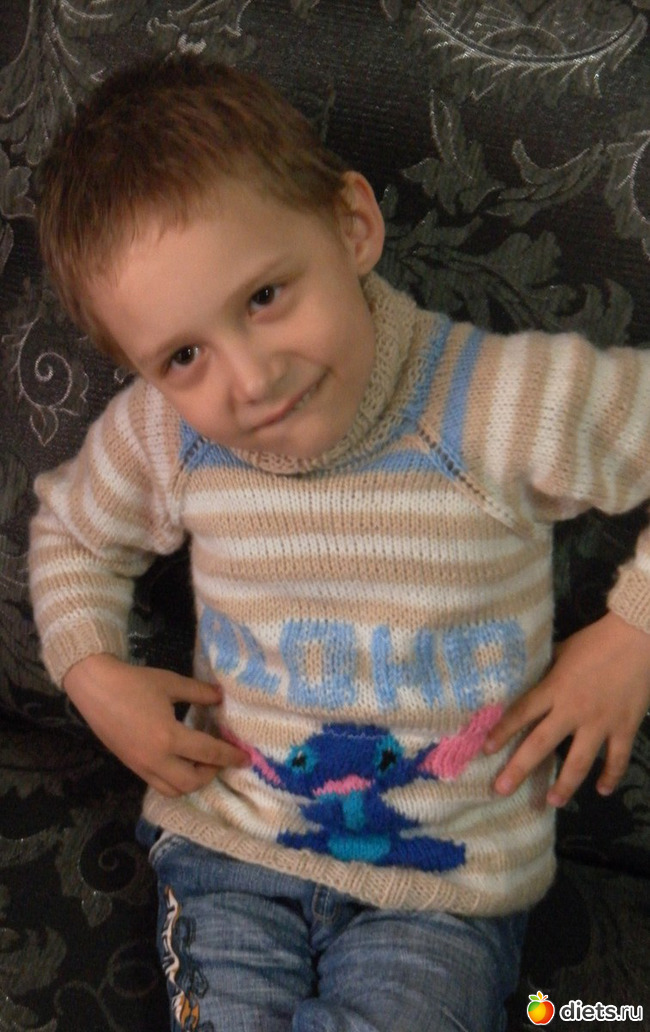 у моего сына обновка любимый мультик про лило и стич и сын сказал мама хочу кофту со стичем, ну вот я и связала