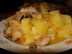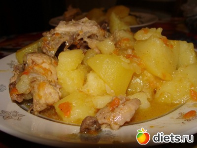 После этого опустить в чугунок нарезанный крупными кубиками картофель.