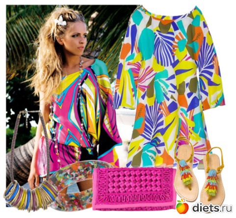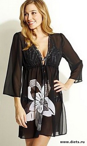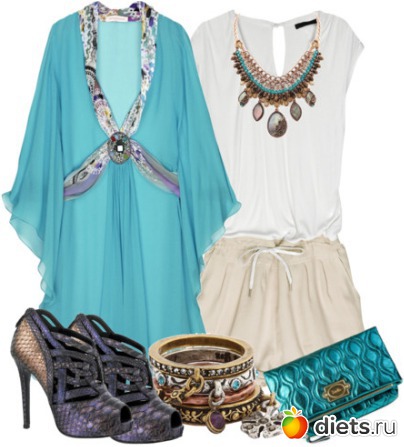 Есть в коллекции и атласная короткая туника, выполненная в белых и голубых тонах, которая идеальна для летнего морского путешествия.