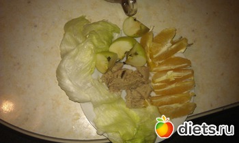 тунец, 1,5 апельсина, салат айсберг" и 2 мини-зеленых яблочка