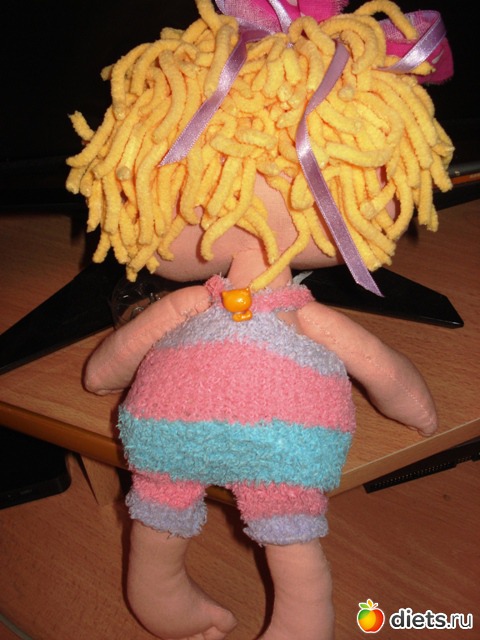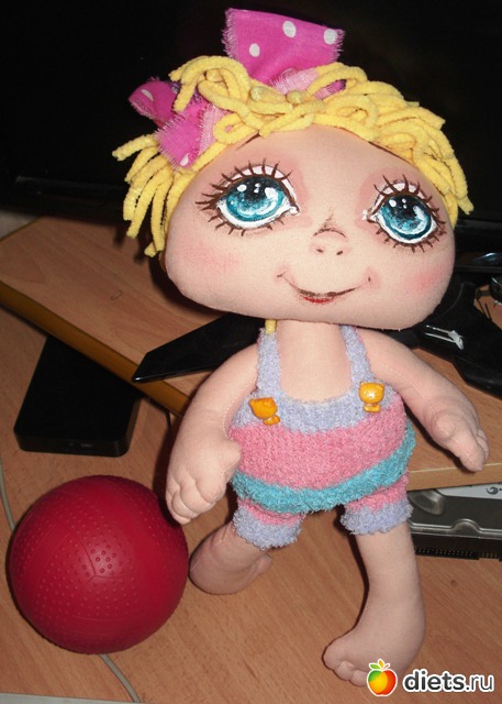 Именно этот пупс сшит из розовой облегченной бязи,не самая лучшая ткань-есть проблемы с раздлвиганием нитей в швах и осыпаемостью срезов.