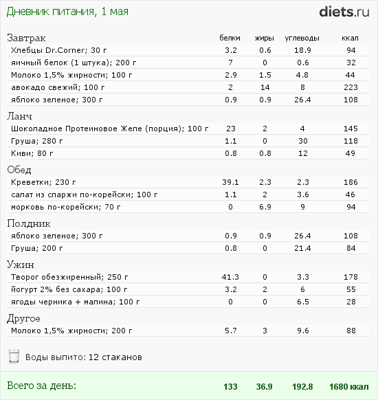 Тут уже кушаем на 1500 ккал в день где-то, углеводы - в 2х первых приемах пищи