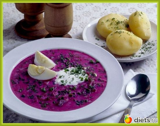 Яйца и зелень нарезать. Соединить со свеклой и ботвой. Посолить, поперчить, залить таном. Если получилось слишком кисло, разбавить водой. Если, наоборот, кислоты не хватает – добавить лимонный сок. Можно добавить 1-2 ложки маложирной сметаны.