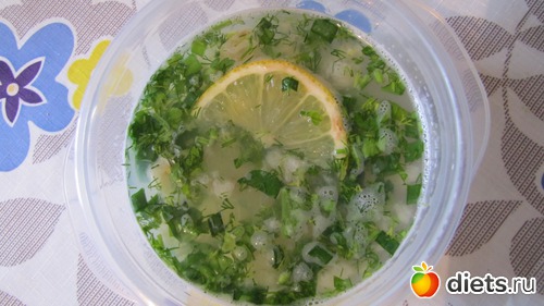 Рыбу и зелень перемешала. Немного добавила в бульон - получилась похлебка