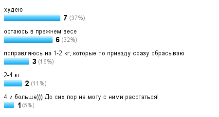 поправляюсь на 1-2 кг, которые по приезду сразу сбрасываю