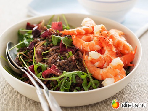 салат из чечевицы с креветками, что-то вроде того, что на картинке: