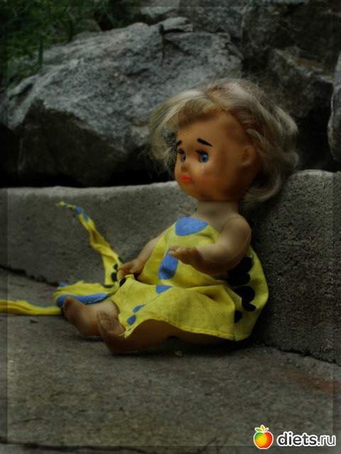 Берёшь игрушки и сразу море воспоминаний. Кукла. С этим куском не одушевлённой пластмассы мы учились жить. Сначала мы пеленали этих кукол, представляя их детьми, потом на них учились ставить первые уколы, играя в докторов, первая пришитая пуговица, это застёжка на не мудрённом наряде состоящим из куска ткани с прорезанными дырочками для рук, а затем постигали исскуство макияжа подкрашивая им глаза и губы. Они жили с нами и были нашими друзьями.
