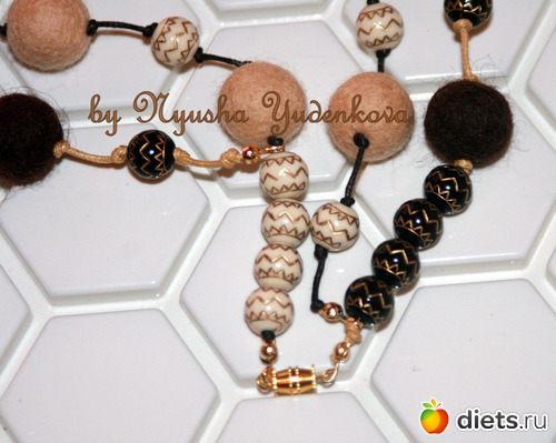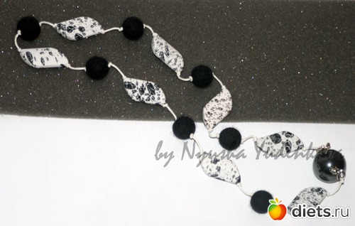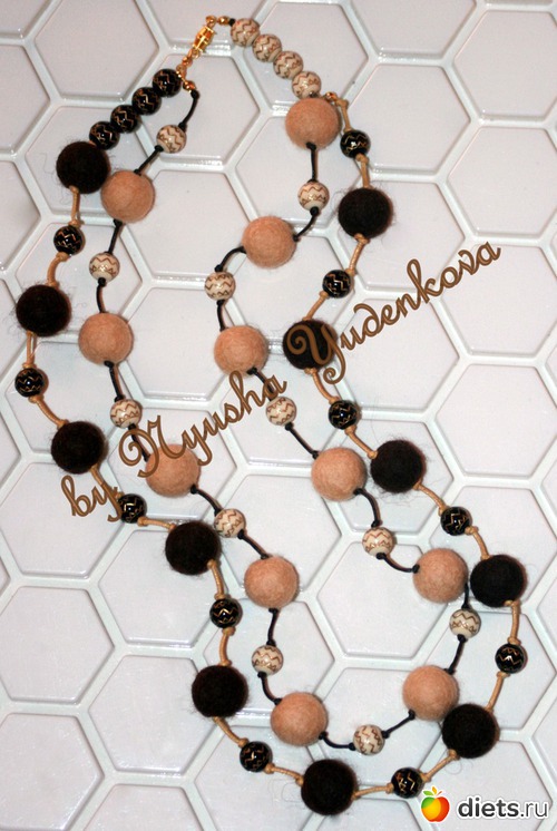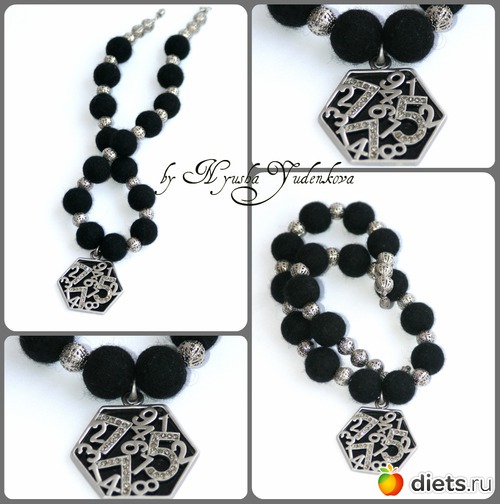 Бусы из войлока в сочетании с фурнитурой серебряного цвета. В центре располагается кулон с цифрами и стразами, металлический. Шерсть в бусах цвета черной южной ночи. Украшение смотрится очень стильно.
