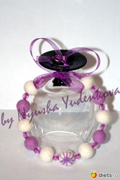"Сиреневая фантазия" на ленте, небольшого размера бусины, диаметр белых примерно 1,7 см, диаметр сиреневых примерно 1,5 см.