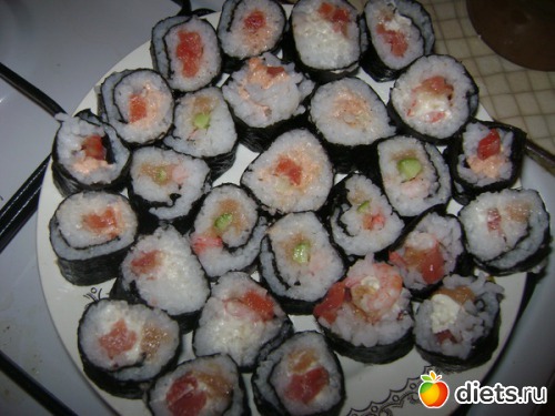 Сперва они все у меня разваливались, никак не могла их нормально скрутить...Еще и рис не могла нормально приготовить,..