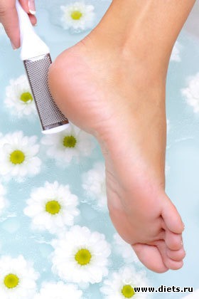 Мы будем себя баловать. Каждый день! Это обязательное задание, которое делать не менее важно, чем уборка дома. Ведь нам постоянно не хватает на себя времени. А с сегодняшнего дня нам необходимо это время для себя находить. Итак, сегодня мы уделим внимание нашим ножкам, ведь скоро лето - пора открытых туфелек. Поэтому мы возьмем щетку-пемзу и тщательно отшелушим пяточки,