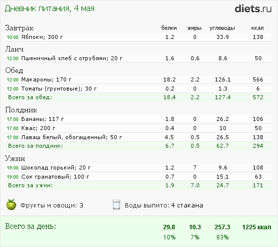 Как-то все неоднозначно. Скушала не так уж и много, а в итоге всю норму калорий (1140) израсходовала и на ужин осталось только скушать полоску шоколада... Чтож тогда можно кушать, чтоб и в норму влезть и мороженки-пироженки на ужин кушать? Может я не совсем правильно понимаю смысл диеты?