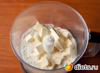 В чашу блендера кладем муку, перец и сливочное масло.