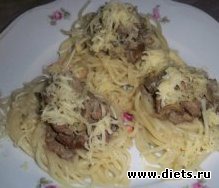 Diets.ru «Гнезда» из спагетти с куриной печенью