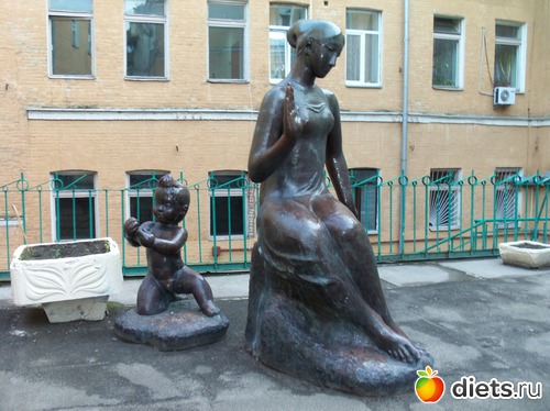 Памятник матери и ребенку во дворе детской гематологической больницы: