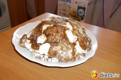 ). Сахар не использовала вообще. Сметану заменила на Диетический творог 0%. А еще сбрызнула пряники сухим вином: и для аромата, и для того, чтобы торт стал однородным. Все таки сметана жиже, чем творог. Можно еще смачивать пряники слегка молоком, если будете делать с творогом.
