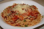 СПАГЕТТИ С ВЕТЧИНОЙ В ТОМАТНОМ СОУСЕ Ингредиенты на 2 порции: