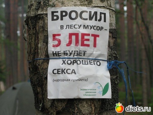 Лешка за свой счет изготовил и развесил по лесу вот такие и похожие плакаты: