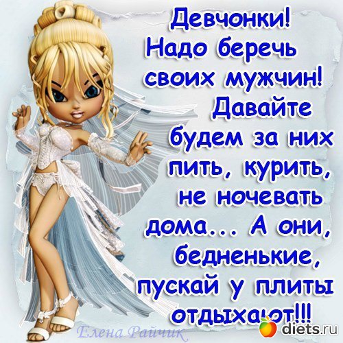 "Абсолютное большинство мужиков в своих блогах, в комментариях на форумах, пишут, что женщинам нужны деньги, что они - меркантильны и расчетливы. Только вот что скажу я вам, мужчины, по опыту своему и своих подружек: эти же 80 на свидание не принесут девушке цветов, не сводят ее не то чтобы в ресторан, а хотя бы в полузадохлое кафе. Анечка, моя маникюрша, рассказывала, как один интернетовский знакомый пригласил ее на свидание. Анечка была с работы - в юбке, на каблуках, в капроновых колготках, стильной курточке. Была осень. вы думаете, он предложил ей хоть посидеть в кафе? Нет! Он 4 часа водил ее по холоду на шпильках по парку с убитым асфальтом. К концу свидания она была промерзшая насквозь, как сосулька. Четыре часа распускал перед ней хвост - какой он на самом деле классный и как ему нужны высокие отношения! О чем вы, мужики, говорите, если многие из вас желание девушки выпить чашку кофе за 100 рублей уже считают меркантильностью? И абсолютное большинство мужчин, приходя к девушке в гости, будут, в лучшем случае, с 1 розой или дешевой шоколадкой. Мало кто подумает о том, что она себе голову сломала над тем, что приготовить на ужин. А ну-ка расскажите мне, расскажите, кто из вас хочет видеть рядом с собой неухоженную девку с отросшими корнями, шелушащейся кожей, облезлыми ногтями, в дешевых китайских джинсах, резиновых шлепках и хэбэшных трусах?! Так нет же, вы желаете хорошеньких, смазливеньких, красиво одетых феечек. При том, что абсолютное большинство из вас выглядят довольно стремно и неухоженно! Вы считаете, что женщины ничего не вкладывают. А вы хоть понимаете, сколько стоит женщине быть красивой?! Задумывались о том, сколько стоит нормальное нижнее белье? Я даже не заикаюсь о шикарном, просто красивое! Вы когда-нибудь смотрели цены на косметику? Сколько стоит приличная тушь, пудра, флакон духов? Тени? Помада? Украшения? Вы орете о том, что женщины меркантильны, но ни одному не пришло в голову, что они уже вложили в свою красоту столько, что вам и не снилось! Поинтересуйтесь, сколько стоит в салоне покрасить волосы? Вы обалдеете. А маникюр? Педикюр? Косметолог? Вы знаете, сколько стоит хороший крем, от которого кожа такая гладкая? А шампунь, от которого волосы блестят? И НЕ ГОВОРИТЕ, ЧТО ВАМ НЕ ВАЖНО, КАК ОНА ВЫГЛЯДИТ - ЭТО ЧУШЬ СОБАЧЬЯ! Так вот с чего вдруг она, вложившая в себя столько денег и сил, должна дарить себя какому-то неудачнику, не способному даже в кино ее отвести? А многие из вас способны прокормить семью? Чтобы она могла спокойно жить дома, вынашивая ВАШЕГО ребенка, и не помереть с голоду? Нет, это не меркантильность! Это нормальный инстинкт - оценивать мужчину по его возможностям. В конце концов, основная функция мужчины - добывать и уметь защитить, быть сильным. Вы предлагаете секс без обязательств и, якобы, удовольствие? Очнитесь, мальчики! Вы-то кончаете практически всегда, а женщина - нет! Потому что вообще женщине сложно получить удовольствие с малознакомым мужчиной. Мы так устроены. Вы все считаете себя хорошими любовниками и думаете, что вас должны разбирать всех, включая убогих, страшных, безденежных, а главное, понятия не имеющих, что такое хоть чуть-чуть ухаживать?