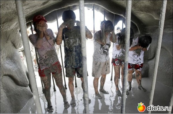 На фестивале был установлен 25-ти метровый тоннель, в котором каждого обдавали струей морской грязи.