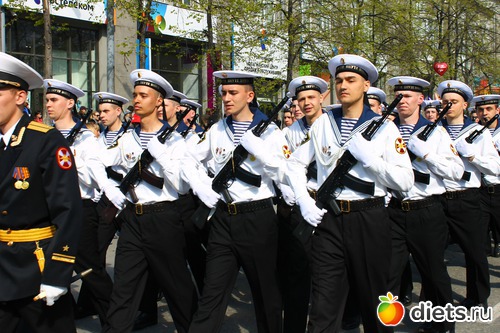Это был последний выходной день. Погода разгулялась, солнце пекло! Мы решили пойти на парад, Коля, несмотря на мой многолетний опыт просмотра парада, не послушал меня - я сказала, чтобы занять хорошее место на параде, надо приходить за час как минимум. В итоге мы пришли за 15 минут до начала. Конечно же места нам не нашлось