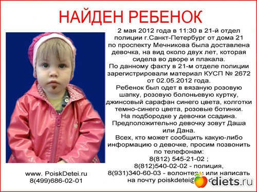 До сего момента девочкой никто не интересовался. Однако, сегодня днем стало известно, что в отделение полиции позвонила женщина, которая узнала на фотографии маленькую дочку своей родственницы. Полиция проверяет полученную информацию.