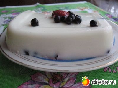 В молоко добавить сахар, ванильку и довести до кипения, помешивая, чтоб растворился сахар. Как только начало закипать, выключить и влить желатин, хорошо перемешать. В форму налить половину молочного десерта, сверху выложить ягоды и поставить в холодильник, чтоб немного загустело. После загустения, налить второй слой молочного десерта и сверху слой ягод. Поставить в холодильник на ночь.