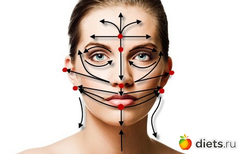 Теперь запомним несколько приемов, благодаря которым массаж лица принесет нам пользу, а не вред. Массировать кожу необходимо легко и аккуратно, по определенным линиям, не растягивая её.