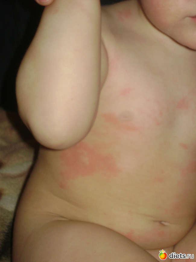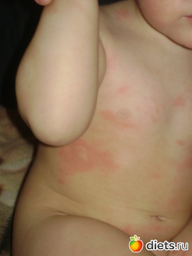 В начале марта я стала замечать у ребенка пятна на теле, особенно после купания всё тело покрывалось красными пятнами-лепехами, потом они постепенно пропадали, я была в шоке не могла понять что это. Врачи, в т.ч. дерматолог у нас не очень, я поехала с ним в другой город, нам назначили лечение, не из дешевых, но это не главное - пятна все не проходили, я перерыла весь интернет, похоже было на крапивницу, дальше в этих пятнах стали появляться вулдыри разной формы, а потом через 5-10 минут прям на глазах изчезать, пятна вылезали в любом месте, даже на носу и на веке, я нервничала жутко, думала может это как то и на внутрение органы влияет, но врач успокаивала, говорила что не на что это не влияет, что все пройдет, диагноз у нас - уртикарный дермографизм (пятна вылезают в соприкосновение с разными предметами, в т.ч. с водой). В это время диету я вообще не могла соблюдать потому что нервничала, а я когда нервничаю, то ещё больше начинаю есть. Вот уже как две недели у нас нет этих пятен, лечение помогло ( я сначала переживала, что не помогает, но видно не сразу лечится). Я сейчас смотрела фотографии и наткнулась на эту (я её делала что бы врачу показать, так как пятна были не уловимы) и решила поделиться, что чего только не бывает, но слава богу лечится.