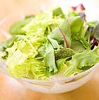 Сухари смешать с растительным маслом и вылить на листья салата.
