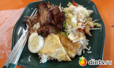 Состав: кавали (традиционное филиппинское блюдо из свинины), печеночный соус, рис.