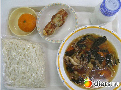 Состав: вермишелевый суп, винегрет, омлет, компот.