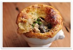 5. Закройте горшочки "крышками" из слоеного теста с отверстие в середине. Закрепите по бокам.