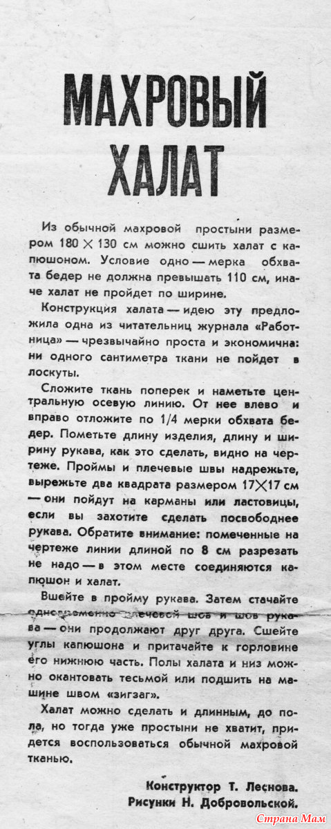 Очень древняя тема, где-то в семидесятые шила халат по этой выкройке, спасибо было приятно вспомнить.