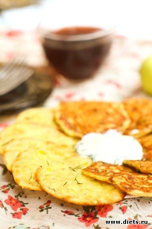 Эти оладьи уникальны тем, что готовятся в духовке, а не жарятся на масле. Однако, моя духовка согласилась выпекать только одну порцию оладьев, а остальные пришлось пожарить на сковороде. На фотографии можно увидеть разницу, приготовленные в духовке более тонкие, а жареные на сковороде более пышные. Выбирайте, какие вам больше нравятся, и те и те очень вкусные! Если вы на диете, готовьте оладьи в духовке.