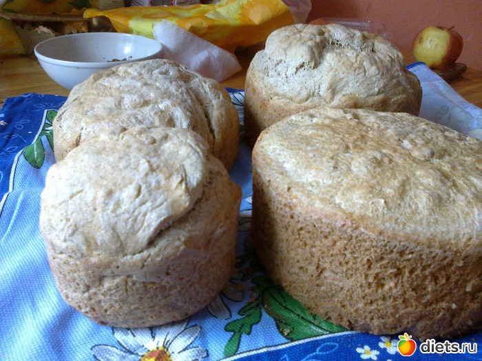 В качестве форм использовала кастрюльки, форму для выпечки, в итоге получилось 2 довольно больших буханочки и 2 поменьше)