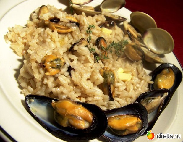 Рис с мидиями содержит углеводы и белок. Блюдо хорошо подходит для поддержания веса. Однако, если Вы находитесь на безуглеводной диете, то лучше ограничить его потребление (из-за содержания риса) и выбирать блюда состоящие преимущественно из белка (куриные грудки, постная говядина, нежирные сорта рыбы, творог).