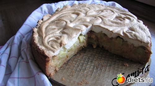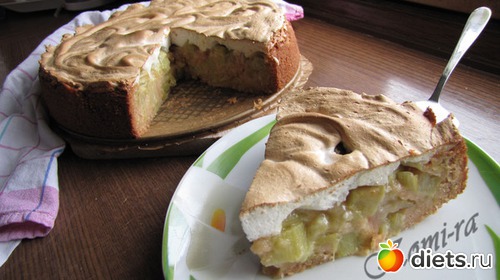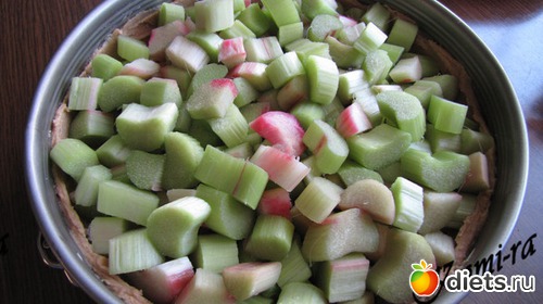 Выложить ревень. Выпекать в разогретой до 200° духовке 40-45 минут.