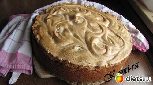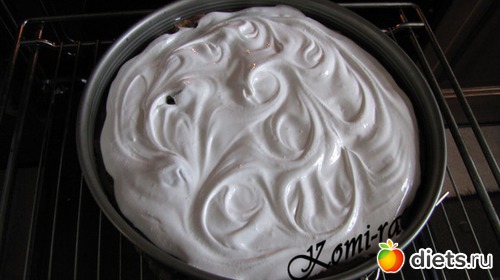 В это время взбить оставшиеся яичные белки с другой половиной стакана сахара,