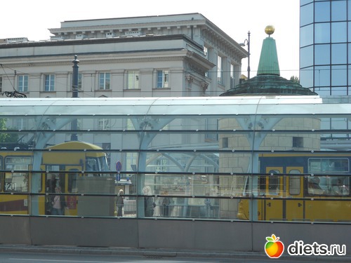 Ну и небоскребчики в конце очень напоминающей Кутузовский проспект Маршалковской - с отражением противоположной стороны в них: