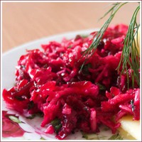 Свеклу необходимо натереть на крупной терке, орехи крупно нарезать.