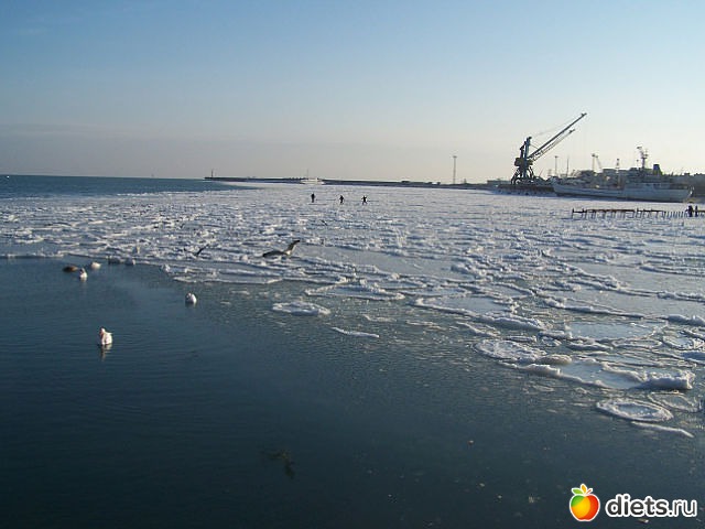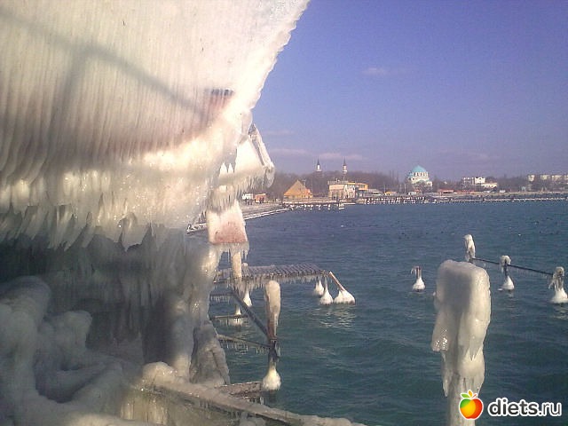 Этой зимой очень сильное обледенение было на набережной, застыли в ледяном панцире яхты на берегу, море на протяженности одного километра превратилось в сплошной лед, прилетевшие на юг.лебеди искали себе пристанище в незамерзающем месте, этому подтверждение