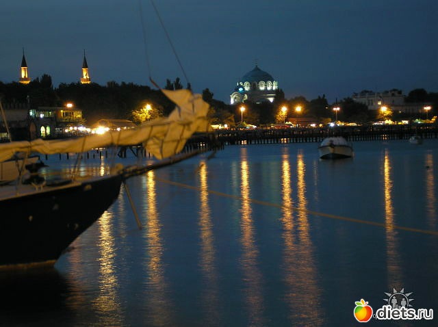 Ночная Евпатория особенно красива, отсвет огней разливаются по ночному морю и это прекрасно радует глаз.