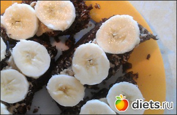 Можно сделать сладкий "хлебушек", вместо соли и приправ добавив сах зам. или протеин. А еще туда можно покидать какао, корицу, изюм, семечки, орехи... ))) а потом намазать творогом и положить сверху банан. Вот так: