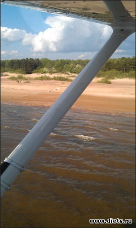 Пилот взял управление в свои руки и, сказав: "Только никому на аэродроме не рассказывайте, как мы с вами летали", сделал резкий вираж вниз, к пляжу, и мы полетели вот так: