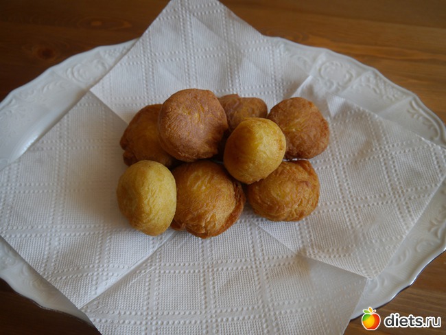 На умеренном огне доводим шарики до золотостого цвета (минут 5, пончики по идее переворачиваются сами, но если чуть достали дна - помогите пончику ложкой